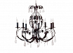 Люстра металлическая c покрытием "темно-коричневый с золотой патиной", декорирована подвесками в виде кулонов из прозрачного хрусталя Swarovski.